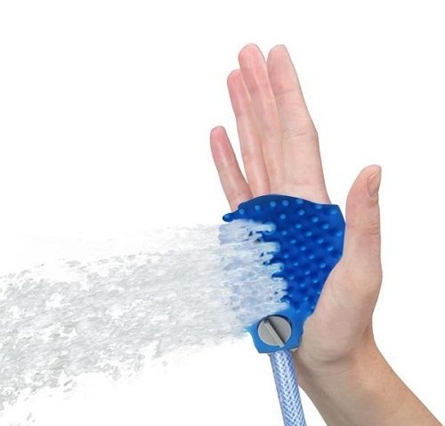 Fürdő kesztyű és a vízszóró egyben.