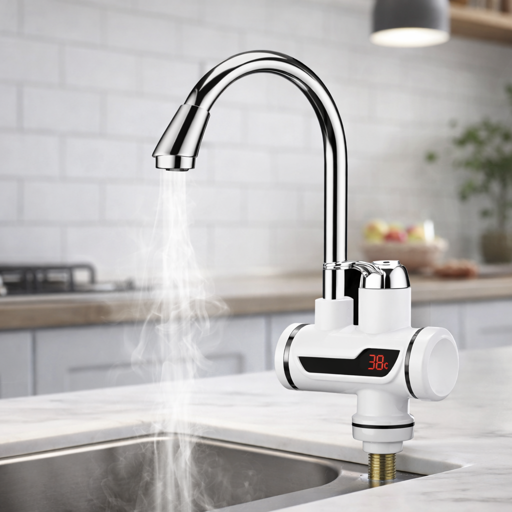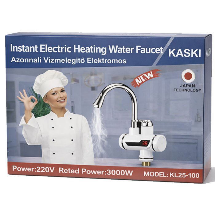 A KASKI KL25-100 egy álló, mosogatóra vagy pultra szerelhető átfolyós elektromos vízmelegítő csaptelep, amely gyors és energiatakarékos megoldást nyújt ott, ahol nincs központi melegvíz.
