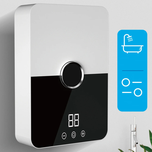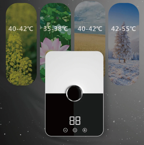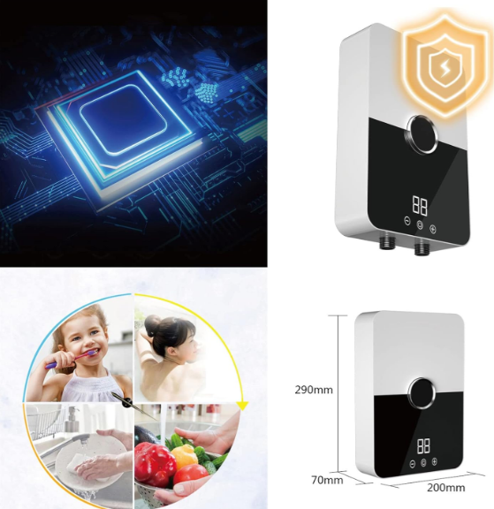 Gyors felfűtés: 5500W nagy teljesítményű rozsdamentes acél fűtőtest, közvetlen fűtés a terminálon, gyors felfűtés 3 másodperc alatt, a meleg víz használatra kész, egészséges és kényelmes. Energiatakarékos frekvenciaváltó fűtés, nincs vízáramlás a fűtés leállításához.