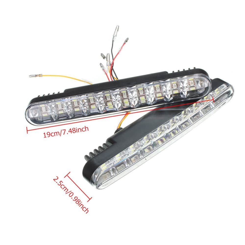 Az autós nappali menetfény extra erős fényű, 20 db SMD leddel rendelkezik, melyhez 10 db sárga index chip is tartozik.