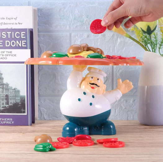 Az egyensúlyozós pizza játék egy mókás és szórakoztató társasjáték, amit 6-10 éves kortól ajánlunk, a cél pedig az,