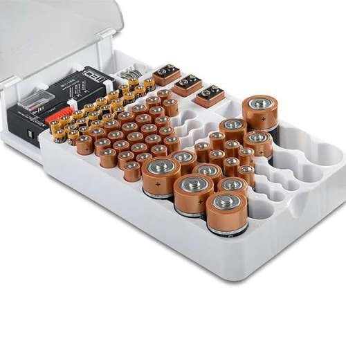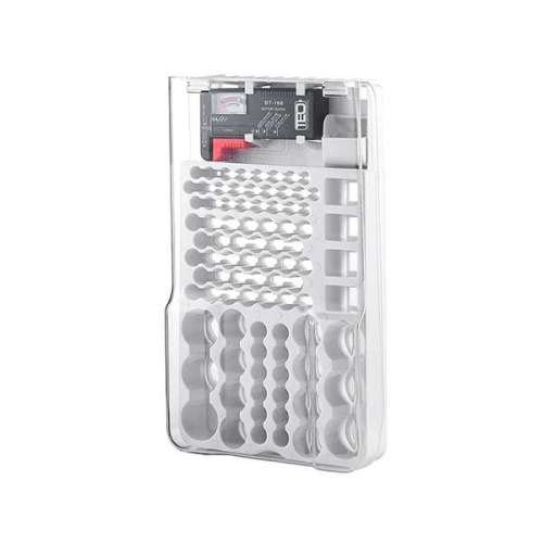 A legkisebb gombelemektől kezdve szinte mindennek találsz majd helyet a műanyag elemtartóban, amit akár a falra is felszerelhetsz. Összesen 93 darab betölthető hely van a leggyakrabban használt, különböző méretű elemek és akkumulátorok számára. Előnye a tartónak az is, hogy könnyen számon tudod tartani, melyik fajta elem van éppen fogyóban, mikor is kellene újra feltölteni a készleted.