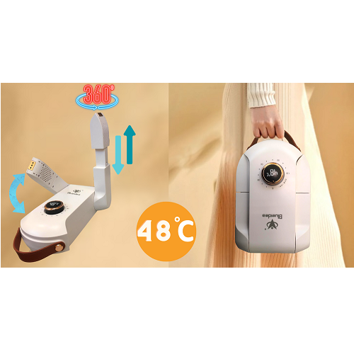 A gép új termikus cipőszárítási módszert alkalmaz, amely hatékonyan távolítja el a nedvességet a cipőkről. A cipőszárító speciális légcsatorna kialakítással rendelkezik, amely gyorsan és egyenletesen melegíthető forró levegőn. 48 fokos forró levegő, egyenletes száradás 360 fokos irányban. Tűzálló anyagból készült, teleszkóposan kihúzható szárak.