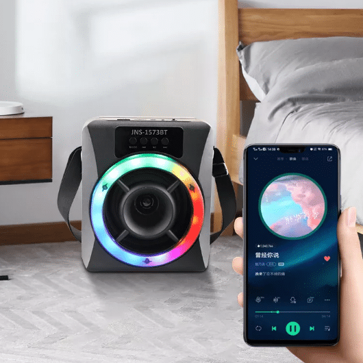 Az erőteljes hangzással ellátott hangszóró az egész szobádat meg fogja tölteni zenével. A hangszórórács körül futó LED fényjáték minden szemet el fog kápráztatni.