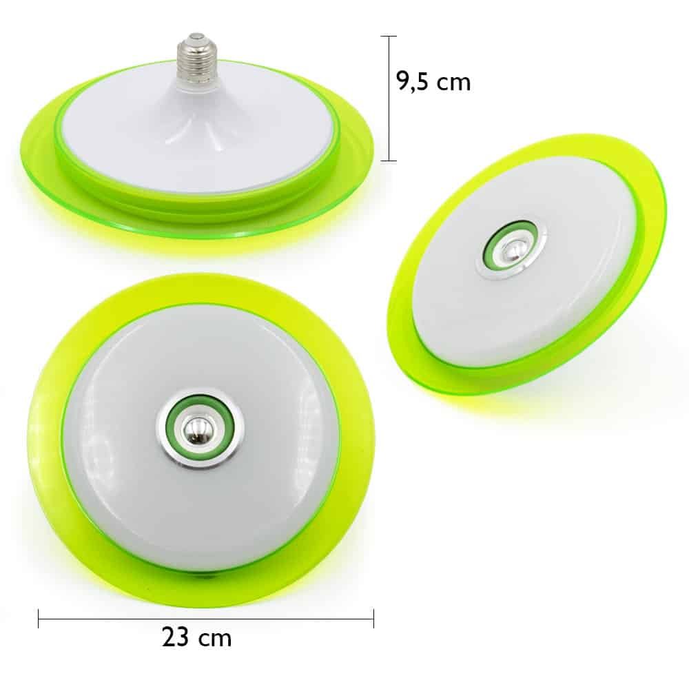 Az UFO LED panel különlegessége, hogy távirányítóval kezelheted, az RGB fényt állíthatod. A lapos, repülő csészealjra emlékeztető lámpát, mint villanykörtét becsavarhatod bármilyen E27 foglalatba. Zöld karimája pedig még extra különlegességet is ad ennek a praktikus lámpának.