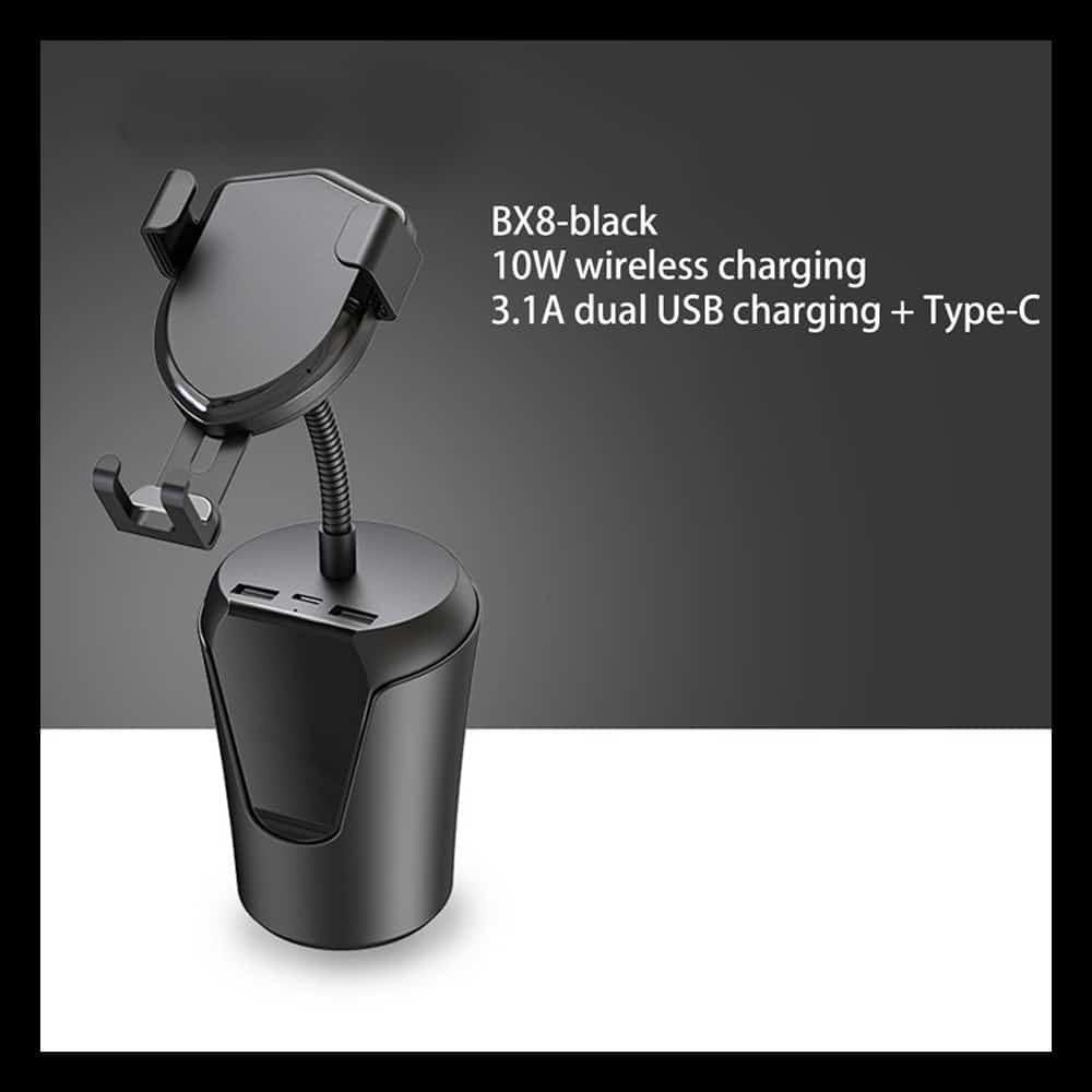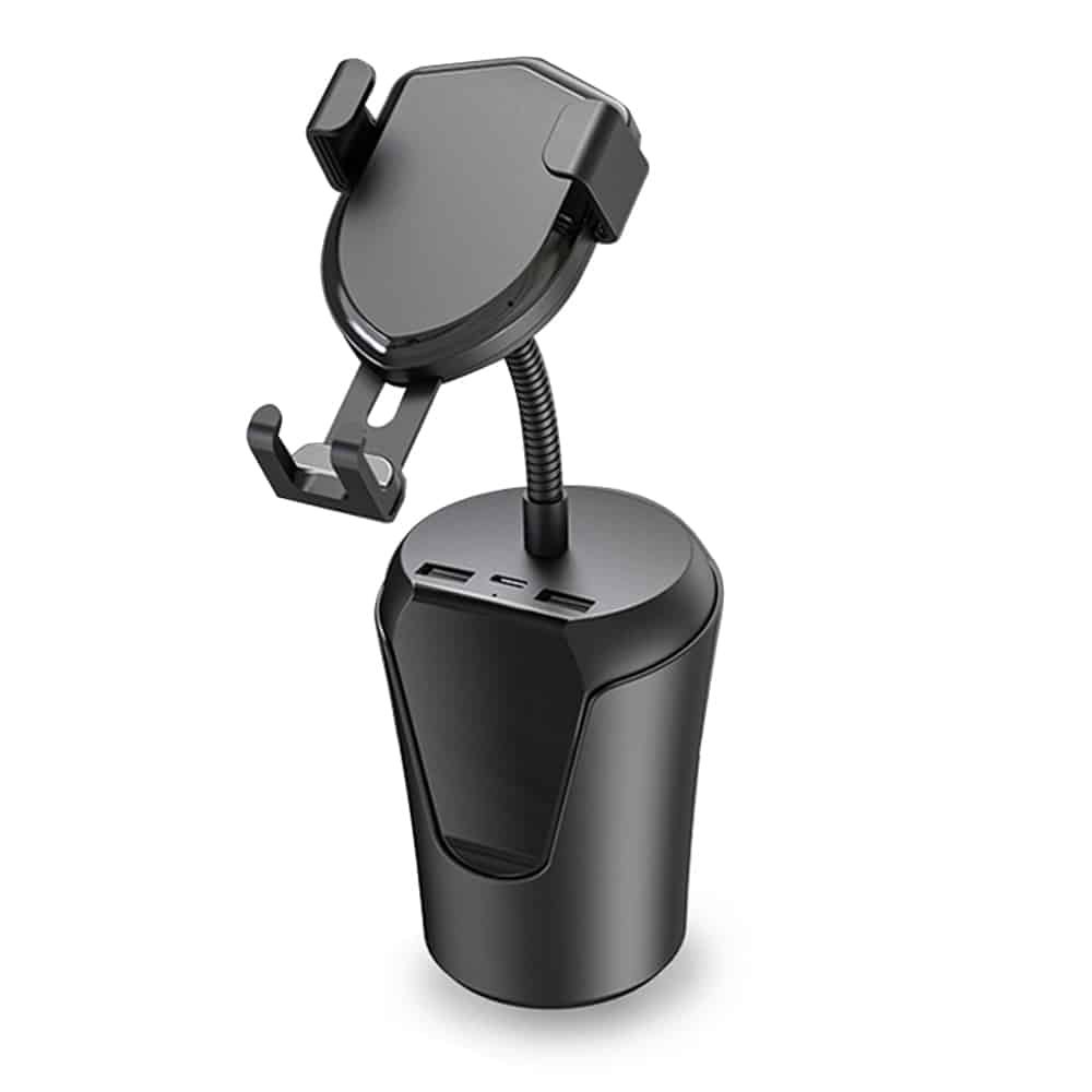 Az autó pohártartójába helyezhető ez a vezeték nélküli gyorstöltővel is rendelkező telefontartó, ami USB-C kimenettel rendelkezik, de 2 db USB kimenetet is találunk rajta. Tápellátást az autó szivargyújtójáról kap, a tartó rész pozíciója 360o-ban állítható.