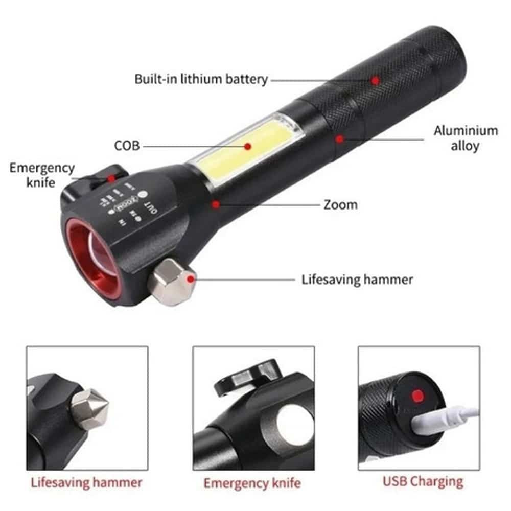 COB mágneses biztonsági pengés zseblámpa többfunkciós T6-28
