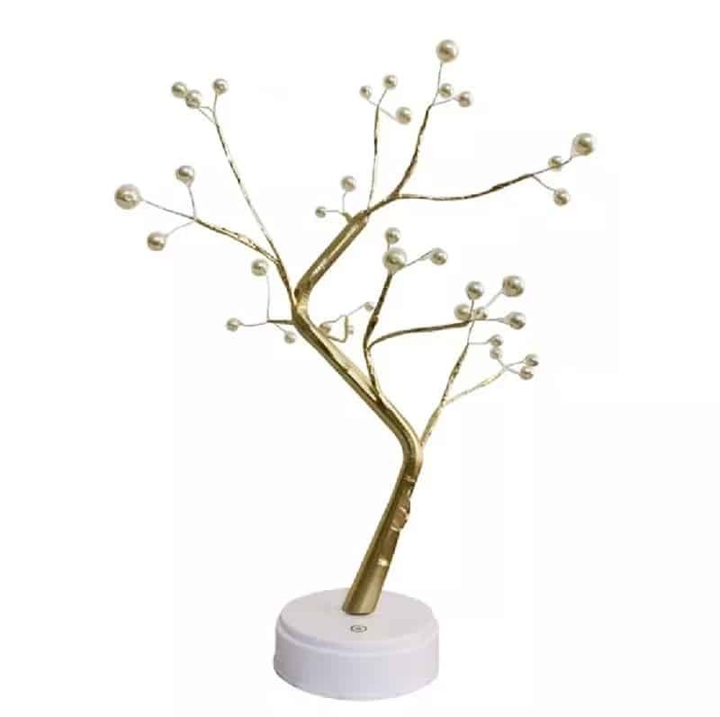 Szeretnél ünnepi hangulatot csempészni otthonodba vagy az irodába? Ez a dizájnos arany-fehér színű, gyöngyökkel díszített dekorációs LED fa kiváló díszítő eleme lesz a nappalidnak vagy az íróasztalodnak!