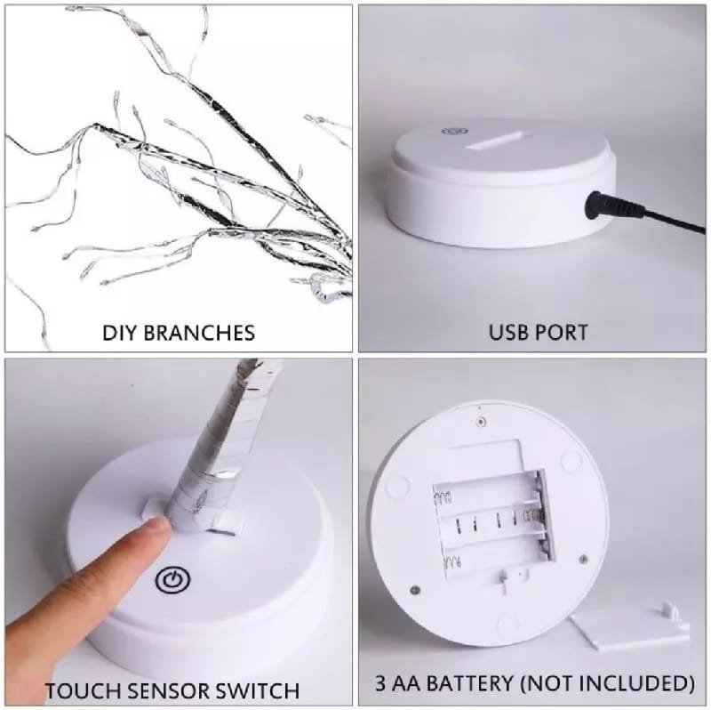 A dekoráció fényeit a konnektorba csatlakoztatás után, vagy 3 db AA elem behelyezése után tudod manuálisan, az érintésérzékeny kapcsolóval felkapcsolni, akár egy kislámpát. Az elegáns ezüst-fehér színű, ledekkel díszített dekorációs világító fa nem csak az otthonokba hozza el az ünnepi hangulatot, használható üzletek és irodák dekorálására is.