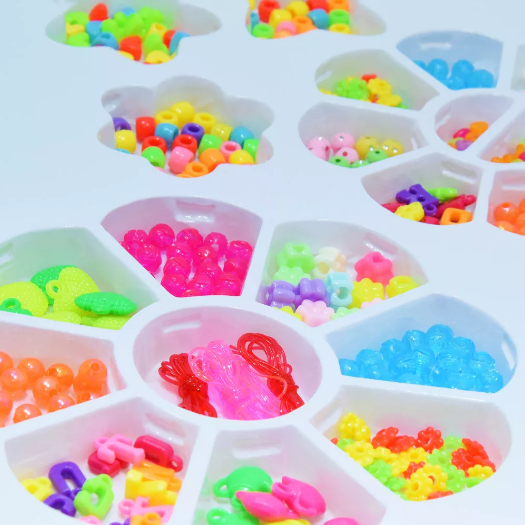 A gyöngyök bárhogy kombinálhatók, a gyöngyfűzés hosszú időre leköti a gyermekeket, miközben kreativitásra tanítja őket. Az eredmény pedig saját készítésű csilli-villi ékszerek!