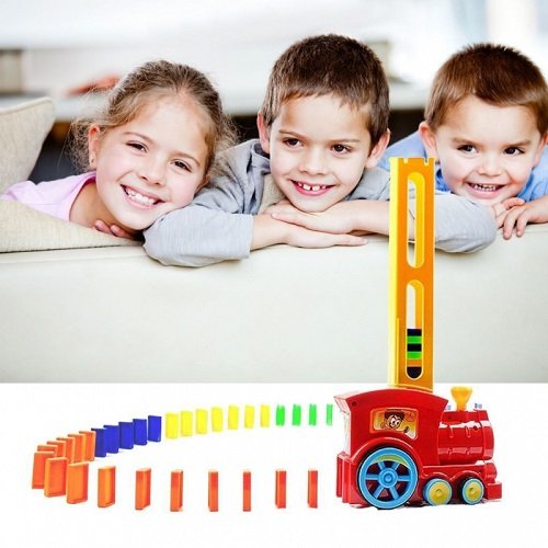 A dominó vonat a gyerekeket teljesen lenyűgözi.