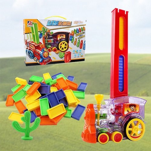 – a vonat megy, világít és dominót épít
