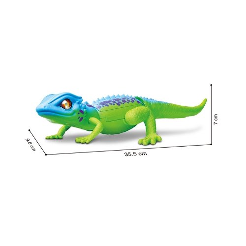 Ez a 35 centiméter hosszú, élethű gyík villámgyorsan fut keresztül a szobán, miközben LED fényekkel hívja fel magára a figyelmet. Társa egy pocok, akit távirányítóként használhatsz. Utasításaidra a gyík előrefelé szalad, hátrál, vagy éppen csóválja a farkát, miközben villognak a szemei.