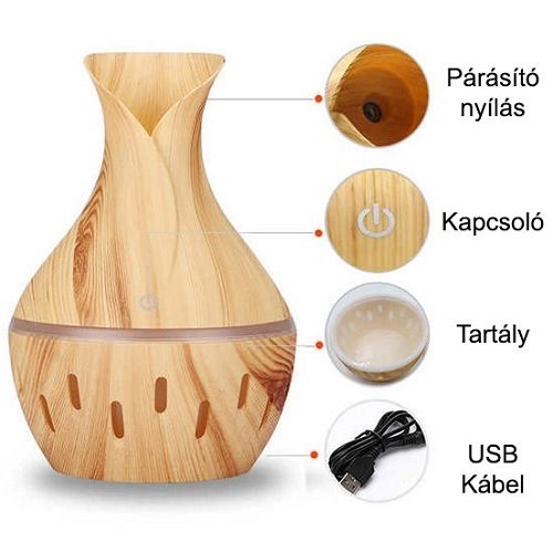 🌿 Fa Hatású Aromaterápiás Párologtató – Ultrahangos Párásító és Illatosító