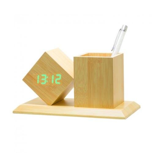 A szögletes, fahatású digitális óra mellett egy írószertartó található, így az estleges szétdobált tollaknak, ceruzáknak is meg lesz a helyük! Az óra hangvezérléses, szóval elég, ha csak tapsolsz egyet, és máris leolvashatod az aktuális időt a digitális kijelzőről!
