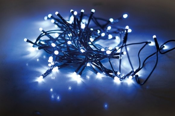 Led fényfüzér 100db leddel. Átlátszó vezetékes, beltéri használatra, fogyasztása 4,8W. Programozható, 8 különféle programmal, köztük a folyamatos világítás is beállítható. 8m a füzér teljes hossza, ebből a betápvezeték kb 80cm. Nem toldható.
