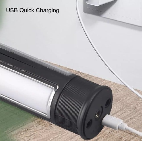 A háromágú multifunkcionális LED lámpa töltéséhez egy USB kábelt is mellékeltünk.