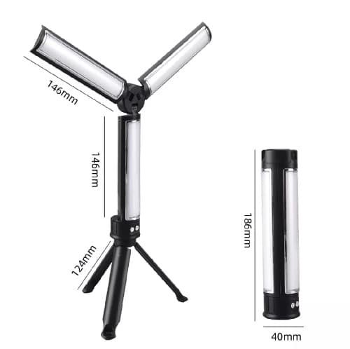 A háromágú lámpa háromlábon áll, így stabil megvilágítást eredményez, valamint a szinte bármilyen irányba elforgatható 3 db LED panele tökéletes fényforrást biztosít, végezz bármilyen munkát. A multifunkcionális lámpa használható szereléshez és asztali lámpaként is, vezeték nélküli működésének köszönhetően pedig nincs szükség energiaforrásra sem hozzá.