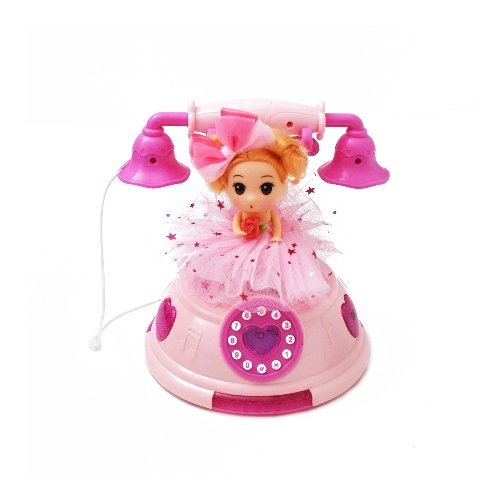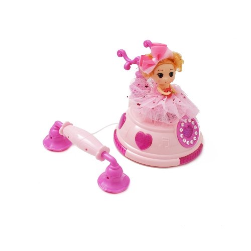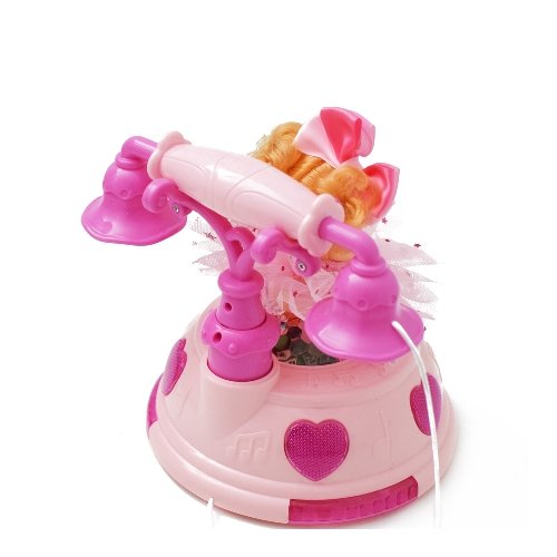 Gyerekszobád dísze lehet ez a ragyogó színekben pompázó telefon a kis hercegnővel. 10 féle zenével, két dallal, zenei hangokkal, fényekkel csal mosolyt az arcodra. Az elemek egyszerűen behelyezhetőek. A hercegnőt a telefon tetejére ültethetjük, a megfelelő billentyűzet lenyomására táncra perdül, forogni kezd. A telefonkagylót felvéve tárcsázhatod barátnőd hívószámát, vagy gyakorolhatod a számolást.
