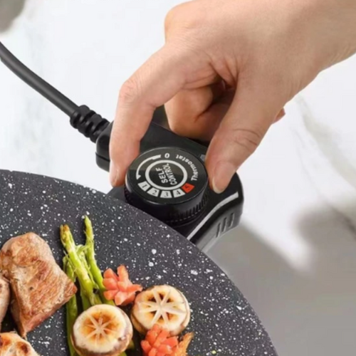 A hőfokszabályzóval 5 fokozatban állíthatjátok a sütési hőmérsékletet annak függvényében, hogy zöldségekhez, halakhoz, kolbászokhoz, vagy húsokhoz használjátok.