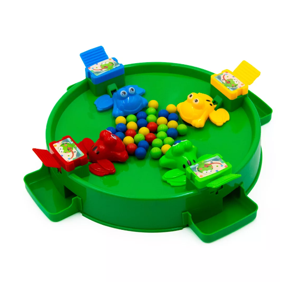 Akinek a békája több színes golyót falatozott meg, az nyer. A társasjáték összeszerelt állapotú, csak a színes golyókat kell kiszórni a pályára.