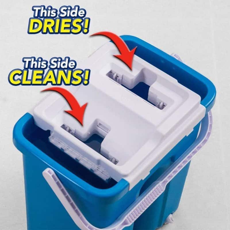 KÉT KAMÁRA: a kétkamrás vödör egyik oldalán a felmosófejet mossa, a másikon szárítja.