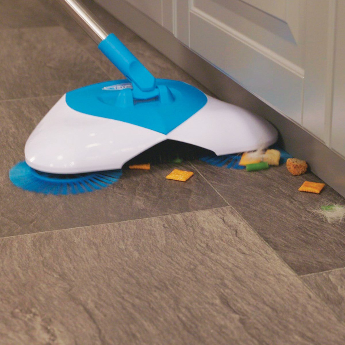 A Hurricane Spin Broom oldalsó keféi középre seprik a koszt anélkül, hogy megkarcolnák a szegőlécet.