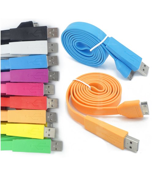 iPhone 4 4S, iPad 2, 3 töltő-adat USB kábelek – FLAT NOODLE – Színes