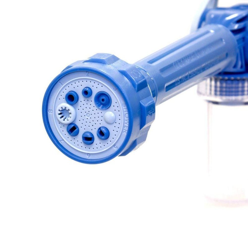 A locsolótömlőhöz csatlakoztatható fejen keresztül magas nyomással távozik a víz, 8 különböző locsolási mód közül választhatsz használat közben. A csomagban található egy mosószertartály is, amellyel még hatékonyabbá teheted a takarítást, legyen szó autóról, teraszról, ereszről, kerti bútorokról, járdáról vagy akár lábazatról. Egy kar segítségével választhatod ki, hogy szeretnél-e mosószert használni, és ugyanezzel a karral zárhatod el a vízsugarat is.