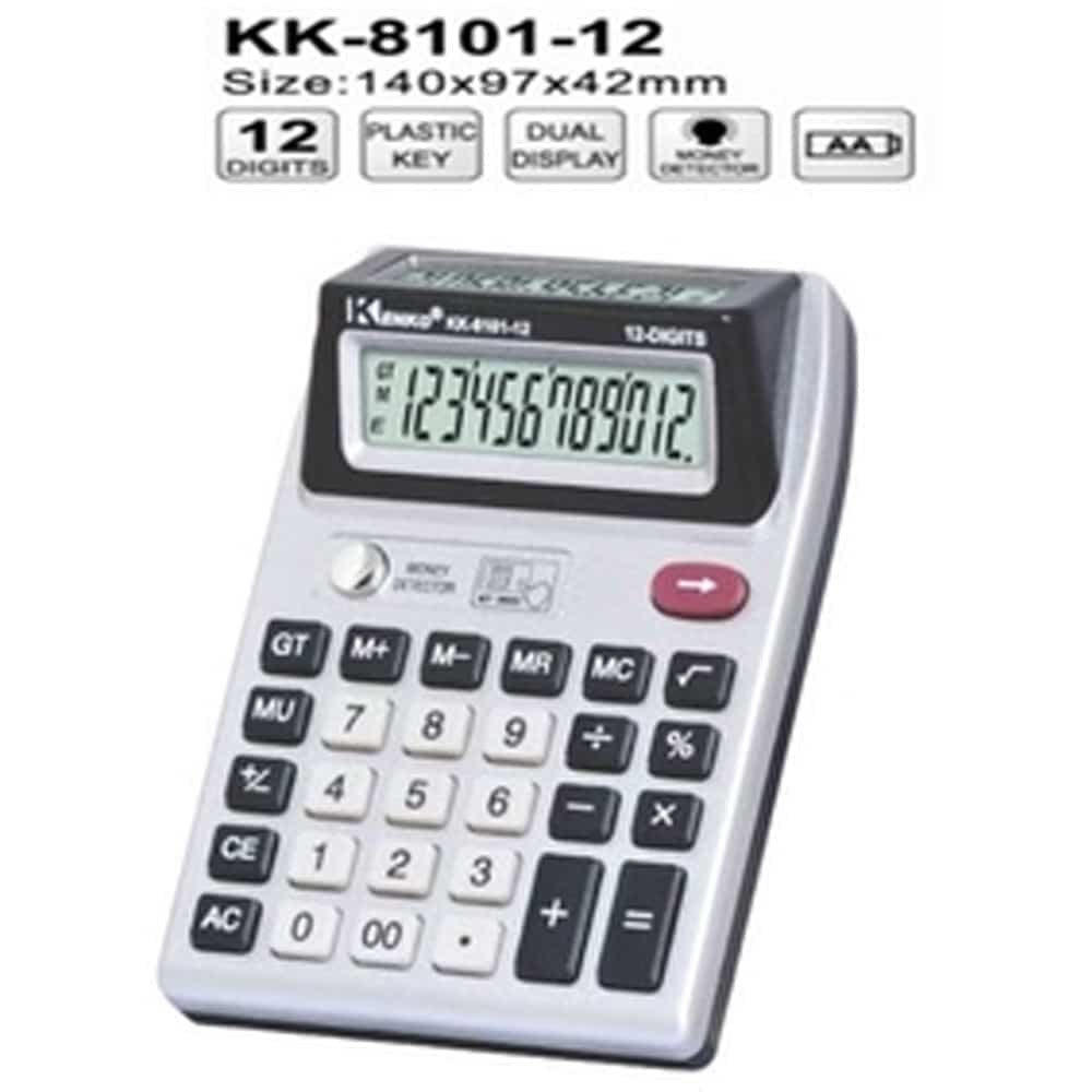 12 számjegyű elektronikus számológép pénzérzékelővel az oldalán KK-8101-12 (ezüst fekete)