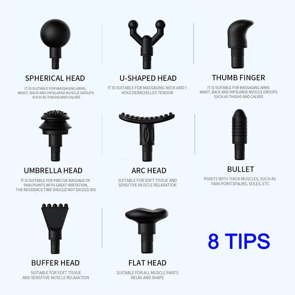 Összesen 8 cserélhető masszázs fej jár a termékhez, ezt szeretné és variálásával teljesen megapasztalhatod a masszázs élményét. Ideális izom, nyak, váll és ízületi fájdalomakra is. A pisztoly vezeték nélküli, ha feltöltöd, akár egy válltáskában is magaddal viheted edzésre vagy a munkahelyedre.