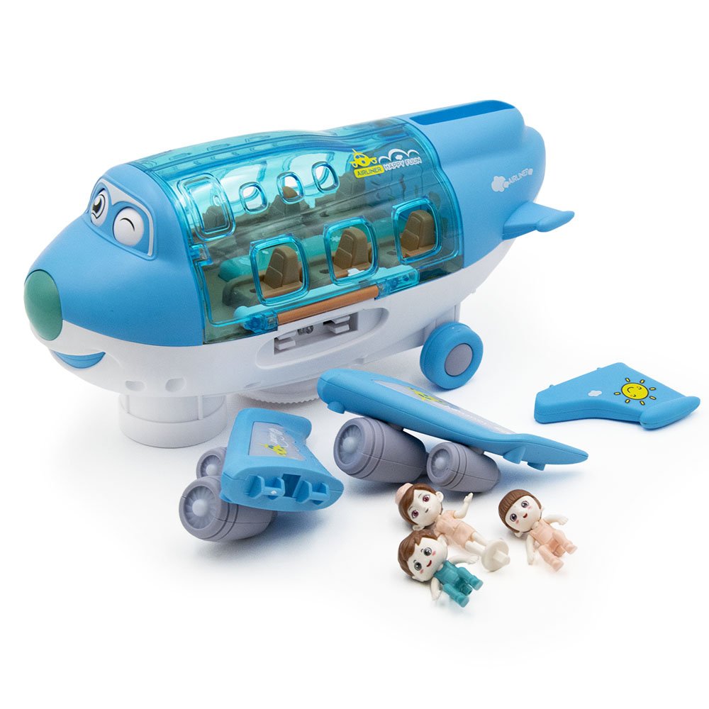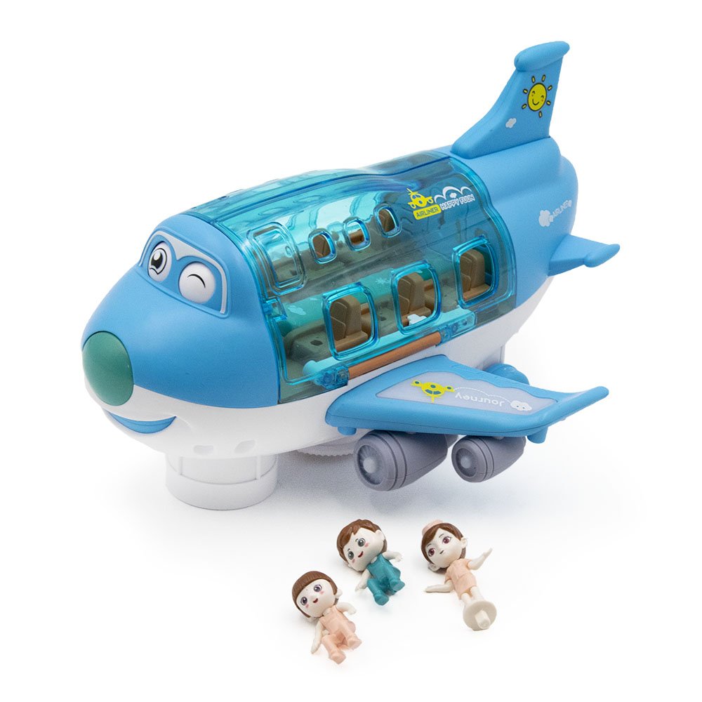 A műanyag játékrepülő átlátszó ablakain keresztül szemmel tarthatod az utasaidat, a kivehető figurák között találsz 2 db utast és egy stewardesst, az utasok a repülőgép üléseire ültethetők, a légiutaskísérő hölgy pedig a repülő elején lévő részbe tehető, hogy tájékoztassa az utasokat a fontosabb repülési tudnivalókról.