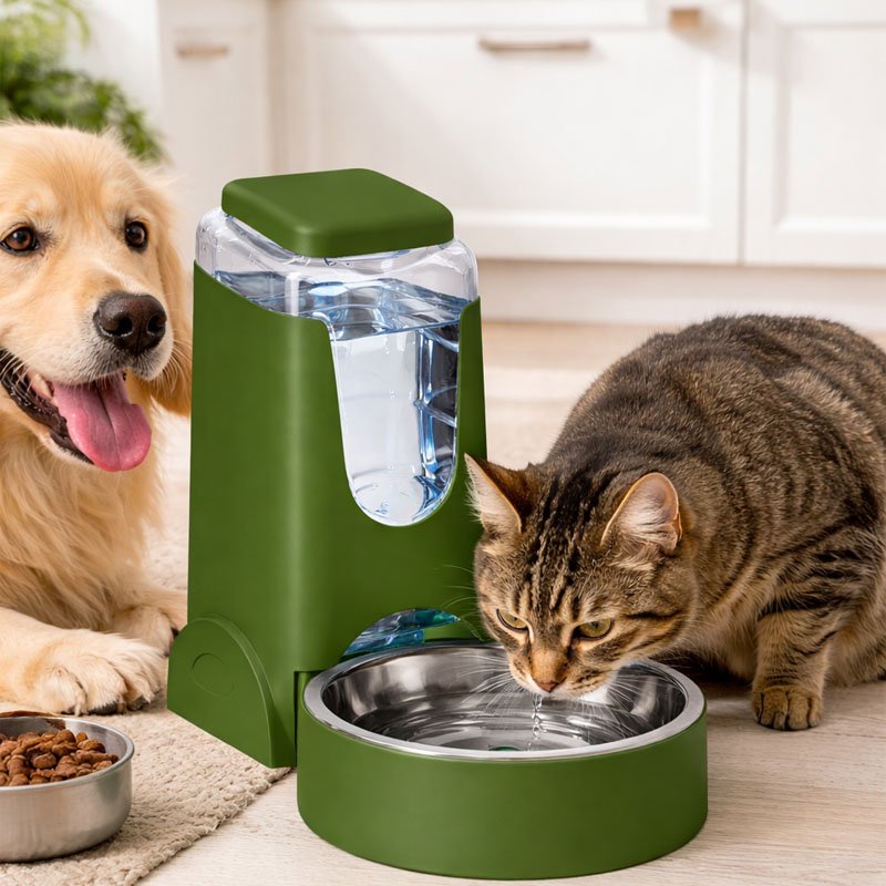 Kisállat automata itató rozsdamentes acél tállal – 3,8 L | Zöld