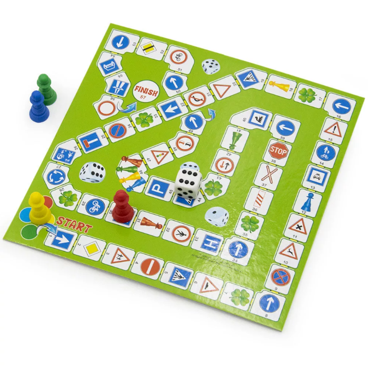 Kresz tanuló társasjáték – oktató játék dobókockával és színes bábukkal