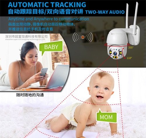 • Super Kültéri Biztonsági IP Kamera Pan / Tilt Wifi kamera HD1080P H.265 Onvif HD PTZ Wifi