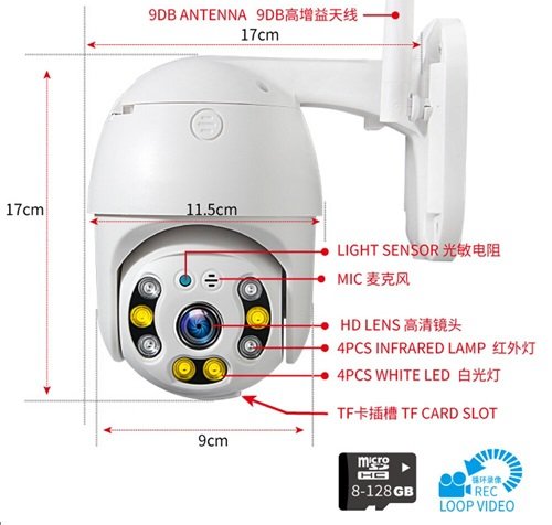 • Támogatja a TF kártya – microSd kartya Max 128GB -és az Xmeye felhő tárolását, IOS/ Android
