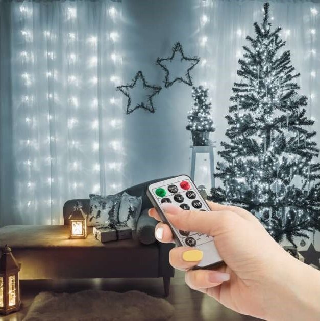 LED fényfüggöny 3m x 3m. 300 darab LED-del. A lelógások 3m-esek.