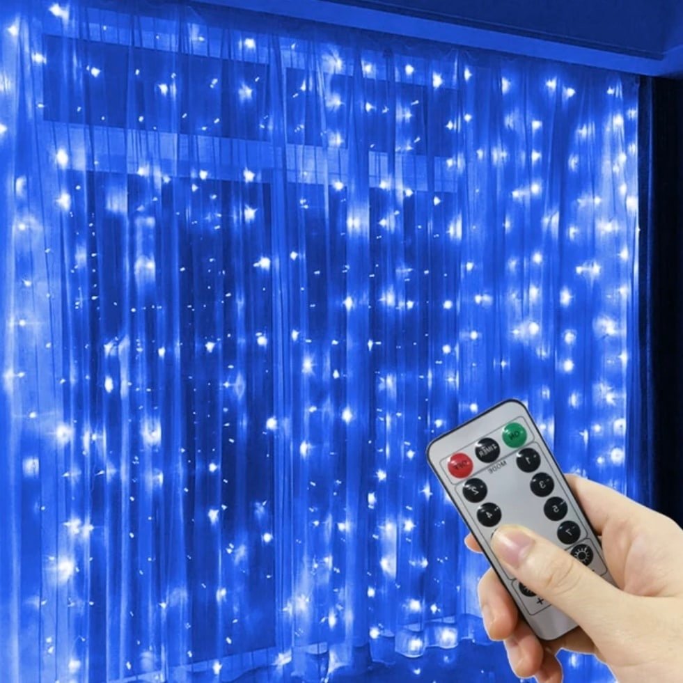 LED fényfüggöny 3m x 3m. 300 darab LED-del. A lelógások 3m-esek.