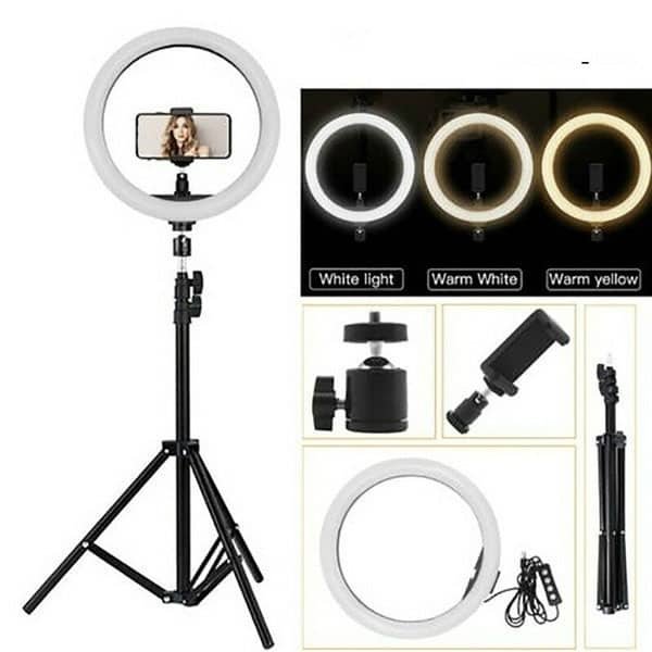 LED gyűrű selfie lámpa, állvánnyal, Nagy LED körfény mobiltelefonhoz 26cm
