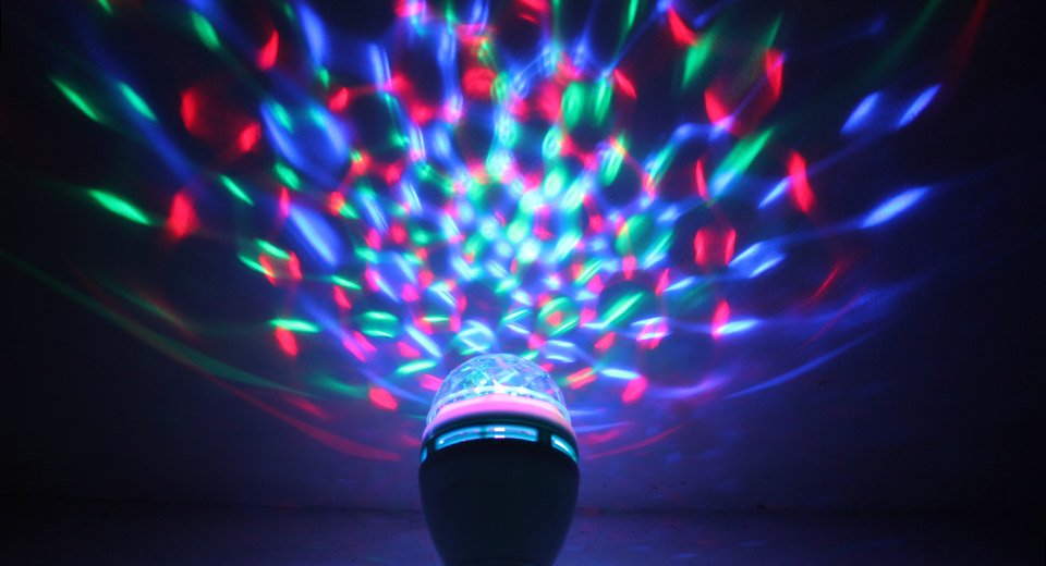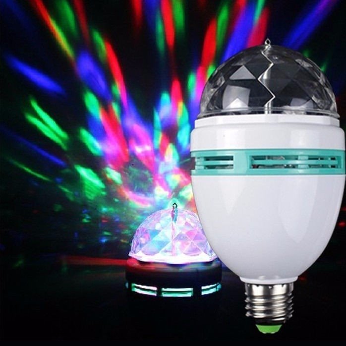 E27 3 * 1W LED Mini party fény Disco DJ Színpadvilágítás RGB Színes forgó lámpa Crystal Magic Ball izzó 1db LED Mini party fény színes forgó lámpa. Kiváló teljesítmény és megbízható minőség hosszú élettartam akár 20.000 óra. Energiatakarékos 80%. Tápbemenet 85-260V