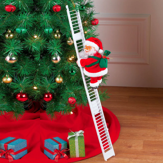 Egy igazán különleges dísz a karácsonyi dekoráció ez a létrán fel- és lemászó felmászó, éneklő mikulás.