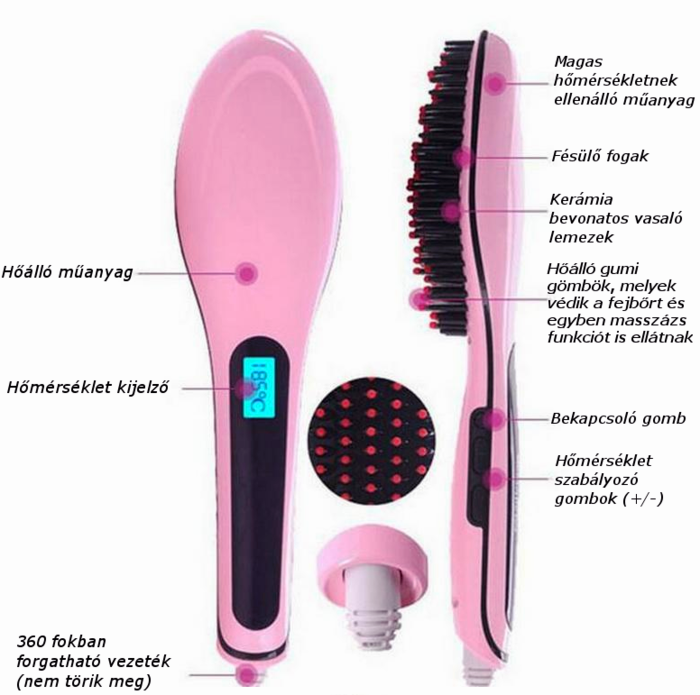 Mágikus elektromos hajegyenesítő hajkefe / digitális hajvasaló fésű