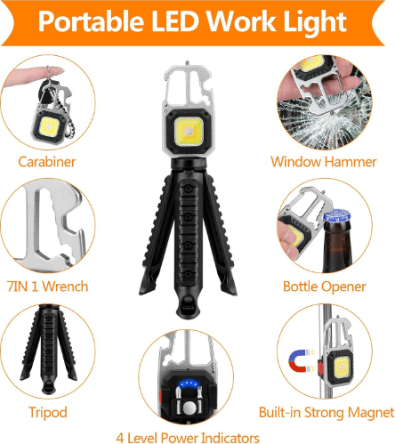 【Kompakt és kényelmes】: Könnyű COB kulcstartónk csak egy súlyt nyom. Karabinerrel, erős mágnessel és alul állványlyukkal rendelkezik (állvánnyal), ami lehetővé teszi, hogy munka közben szabadon tartsa a kezeit, szuper kényelmes, ha a táskájába vagy kulcstartójába helyezheti, és bármikor, bárhol használhatja.