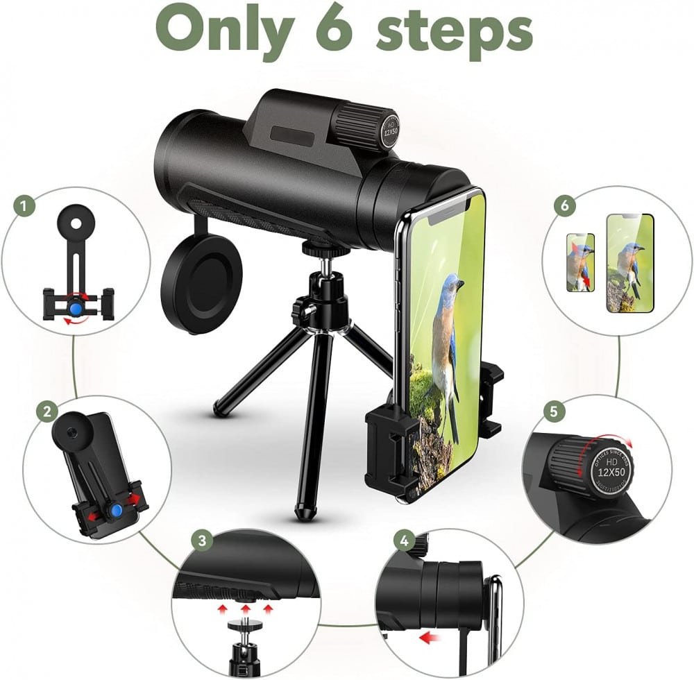 Ez a monokuláris teleszkóp egy nagy teljesítményű készülék, amely lehetővé teszi, hogy élvezze a látványt akár éjjel is. A 12×50 HD nagyítású monokulár éjszakai látással rendelkezik, így lehetővé teszi, hogy közelről megfigyelje az éjszakai égboltot, vagy akár a távoli objektumokat is.