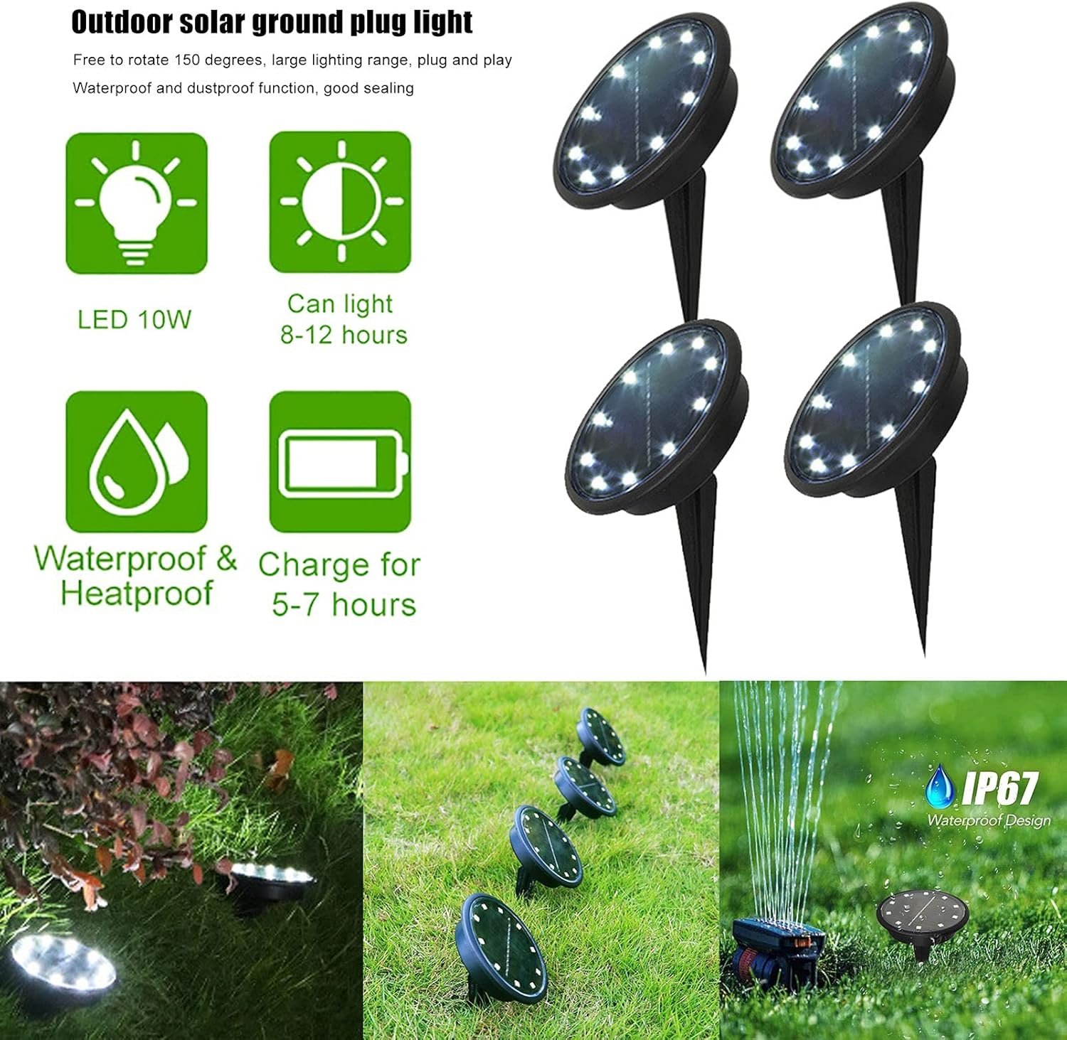 🌞 Napelemes LED Kerti Szolárlámpa – Leszúrható (4 db-os szett)