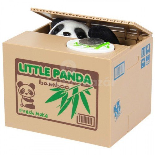 Az elemes persely nem csak szórakoztató, de hasznos is, hiszen segítségével könnyedén elsajátítható a takarékosság mindennapi rutinja. Ha az aprópénzt a tetején lévő tálcára helyezitek, előbukkan egy kedves panda, aki örömének hangot adva behúzza az érmét a persely belsejébe. Ott őrzi egészen addig, amíg a doboz alján található nyíláson keresztül ki nem veszitek az összegyűjtött vagyont.
