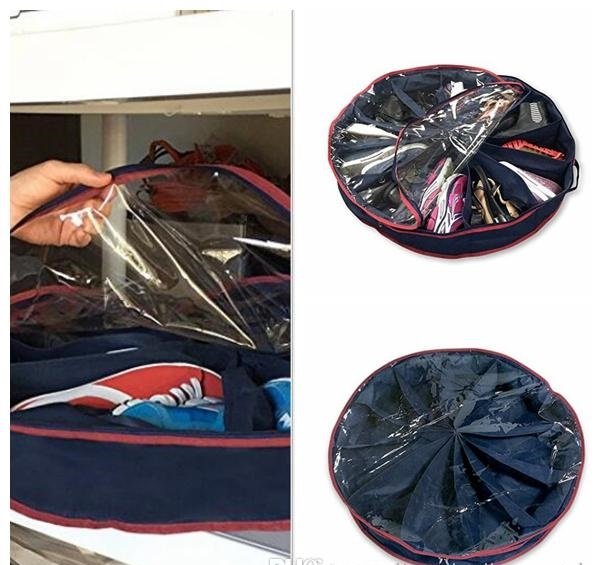 Ez a cipőtartó egy helytakarékos szervező 12 darabo cipőt képes befogadni. Átlátszó PVC burkolata és 360 ° -os cipzárja azonnali bepillantást és gyors hozzáférést biztosít minden benne rejlő cipőhöz. Ráadásul a műanyag burkolat biztosítja, hogy a cipő tiszta és pormentes maradjon. A varrott fogantyúk mindkét oldalon egyszerűen hordozhatóvá és hozzáférhetővé teszik. A Shoe-Go kerék nem csak a cipők számára kiváló, hanem sálak, kesztyűk és egyéb apró tárgyak tárolására is használható. Ha belefáradt a ruhájái cipői és egyéb tartozékai keresésébe, akkor a Shoe-Go Round tökéletes megoldás az Ön számára!
