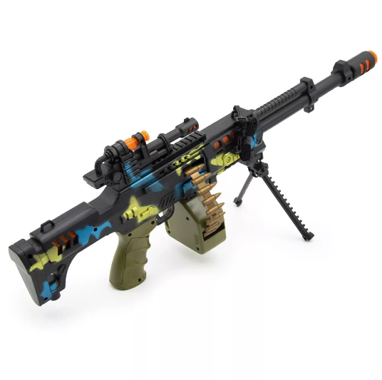 A játékpuska villog és puska hangokat hallat, amikor meghúzzák a ravaszt. Élethű módon rezeg, és a töltények is dinamikusan mozognak a tárban, szinte olyan élményt nyújtva, mintha egy valódi lőfegyverrel bírnál! Ha távoli célpontot kell eltalálnod, vagy precíz célzásra van szükség, a játékhoz tartozó kiegészítő támasz stabilizálja a fegyvert, így “pontosabb” lövéseket tehet számszerűvé.
