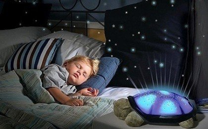 Színes csillagokat vetítve, a mennyezetre, melyek színe a megnyugtató zöldből indulva, a barátságos kék égbolton át, altató piros árnyalataiban lágy átmenetben váltakozik, de beállításnak megfelelően a három szín közül mindegyik külön is aktíválható