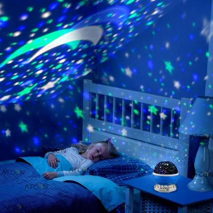 A projector színes csillagokat vetít a plafonra, a falra vagy az ablakokra